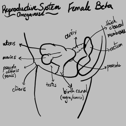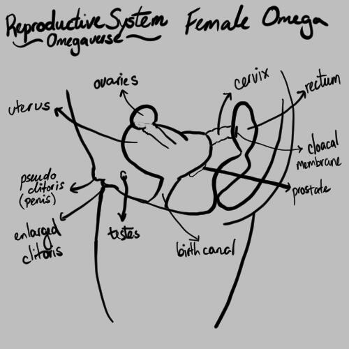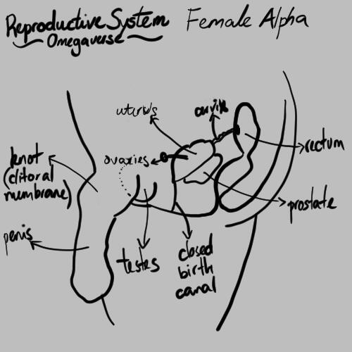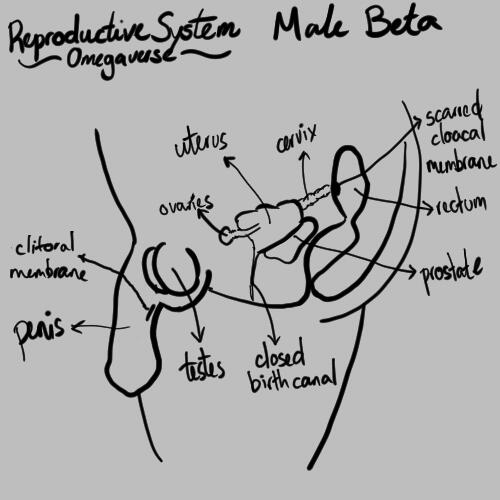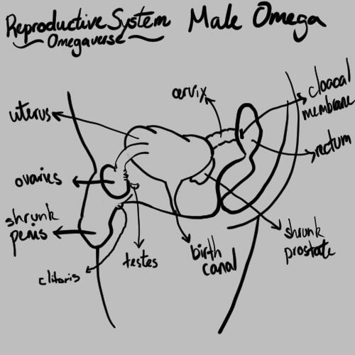 Much like an omega’s, their hips and partial-cloacal opening may be narrower. During their development from pups, their prostate and seminal ducts did not close off completely and therefore their semen is still produced with sperm. Therefore similar to an alpha (or male beta) these omegas may in theory be able to get sire pups. Depending on that reproductive system’s level of development.However, due to the limited space in their uterus, it is unlikely that this omega variant can carry to term.